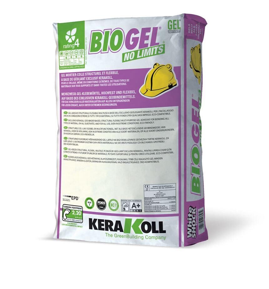 KERAKOLL KIINNITYSLAASTI BIOGEL NO LIMITS VALKOINEN 25kg