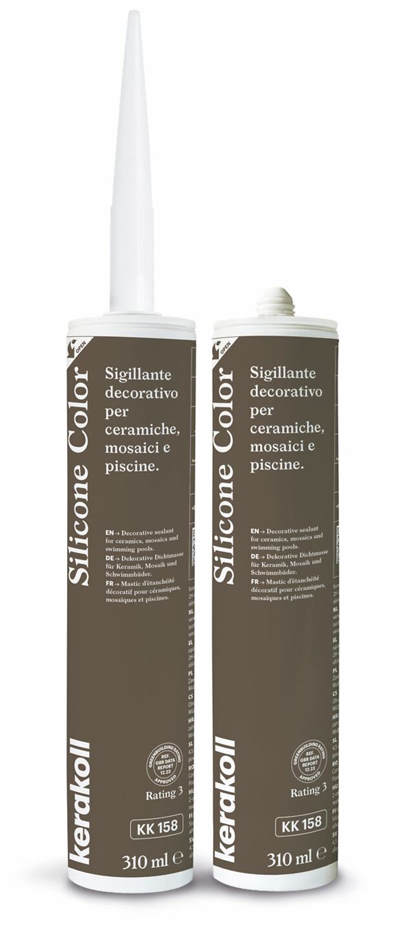 Värillinen M1-luokiteltu silikonitiivistysmassa keraamisille laatoille ja mosaiikeille. Silicone Color -massa kiinnittyy erittäin hyvin imemättömille alustoille ja muodostaa tiiviin ja muodonmuutoksia kestävän, keraamisten laattojen välisen joustavan sauman.