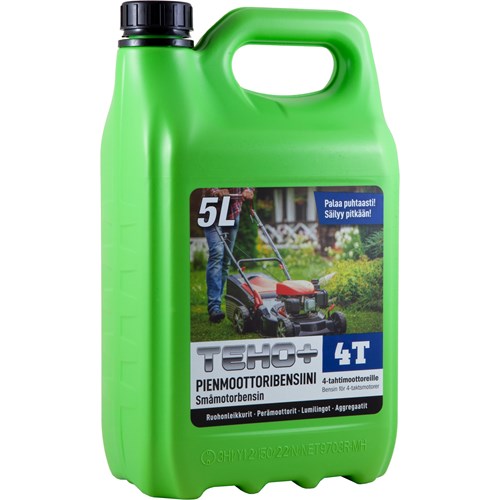 Teho+ 4T Pienmoottoribensiini on tarkoitettu käytettäväksi 4-tahtimoottorilla varustetuissa työkoneissa ja kulkuvälineissä (ruohonleikkurit, moottorikelkat jne.) Erittäin matala-aromaattista alkylaattibensiiniä ja on lähes hajuton. Teho+ 4T Pienmoottoribensiini palaa lähes täydellisesti, jolloin palotilaan syntyy vähemmän karstaa ja pakokaasut ovat puhtaampia. Näin myös moottori pysyy puhtaampana. Teho+ 4T Pienmoottoribensiini säilyttää ominaisuutensa pidempään ja soveltuu sellaisenaan hyvin säilytysbensiiniksi.